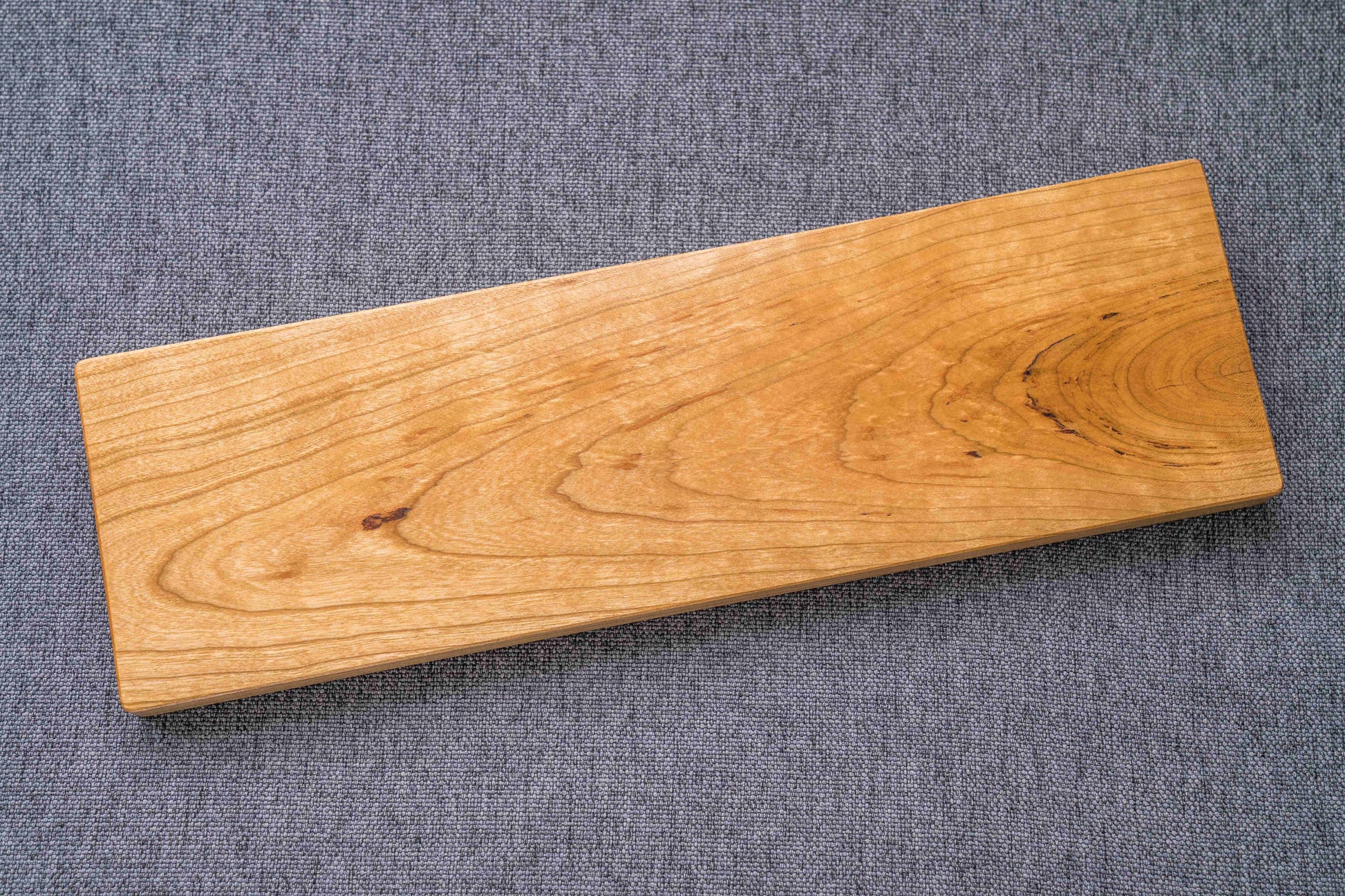 No pigment, no frills. Just hand-finished cross grain hardwood featuring just the characteristics of the wood. Simple box-on-wedge design.