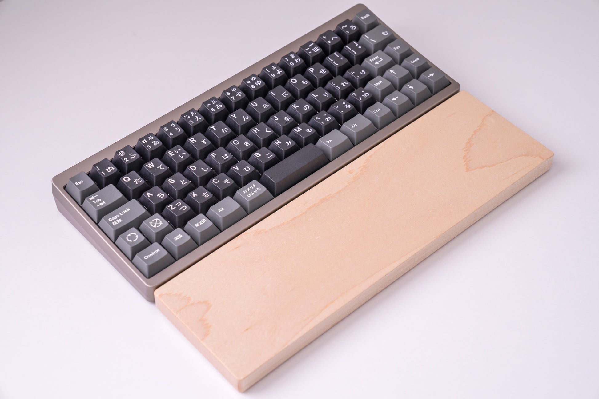 Base: 3D-printed PETG wedge to angle the wristrest for a comfortable typing experience. Silicone bump-on feet keep it stable on your desk.