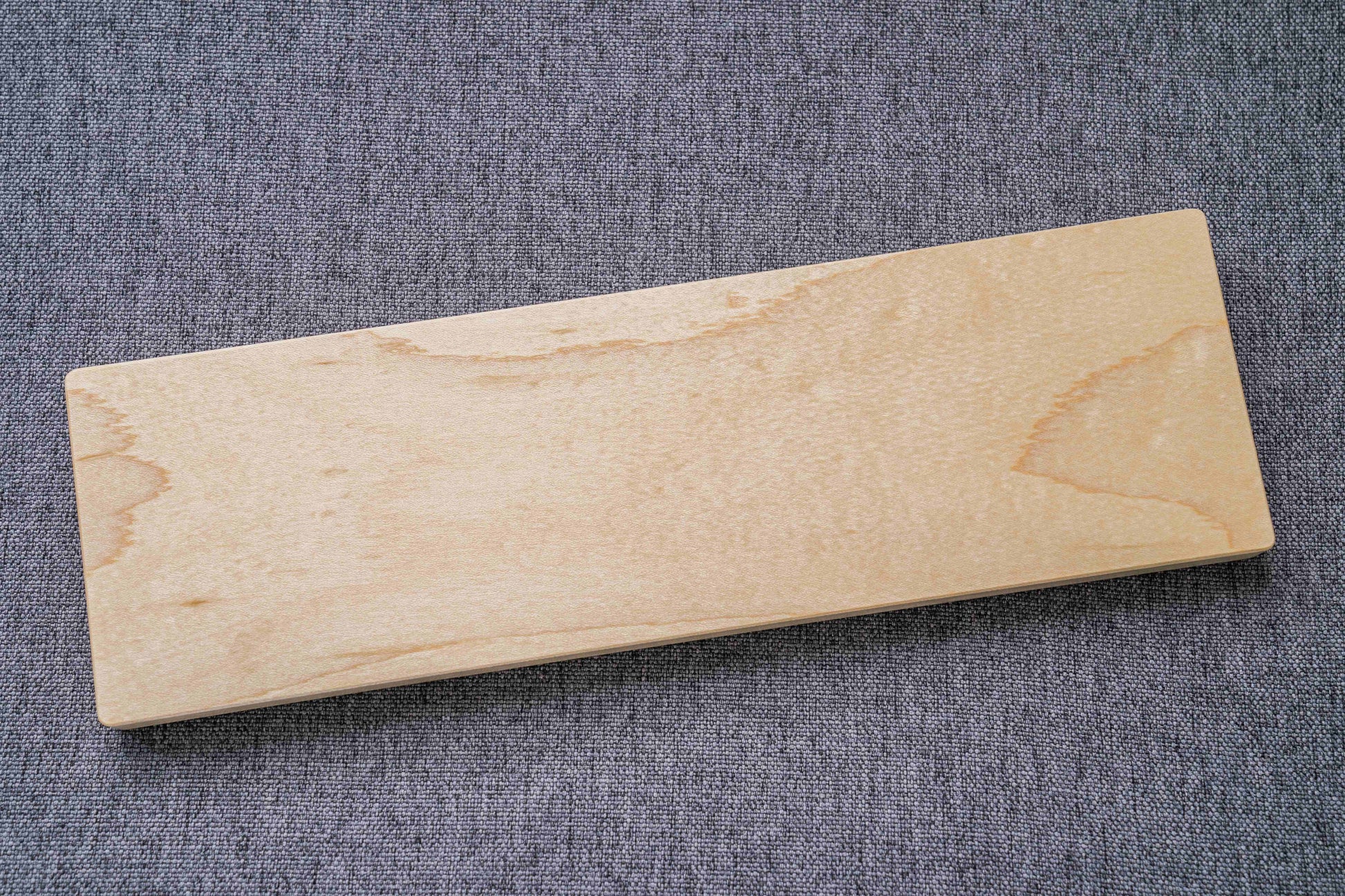 No pigment, no frills. Just hand-finished cross grain hardwood featuring just the characteristics of the wood. Simple box-on-wedge design.