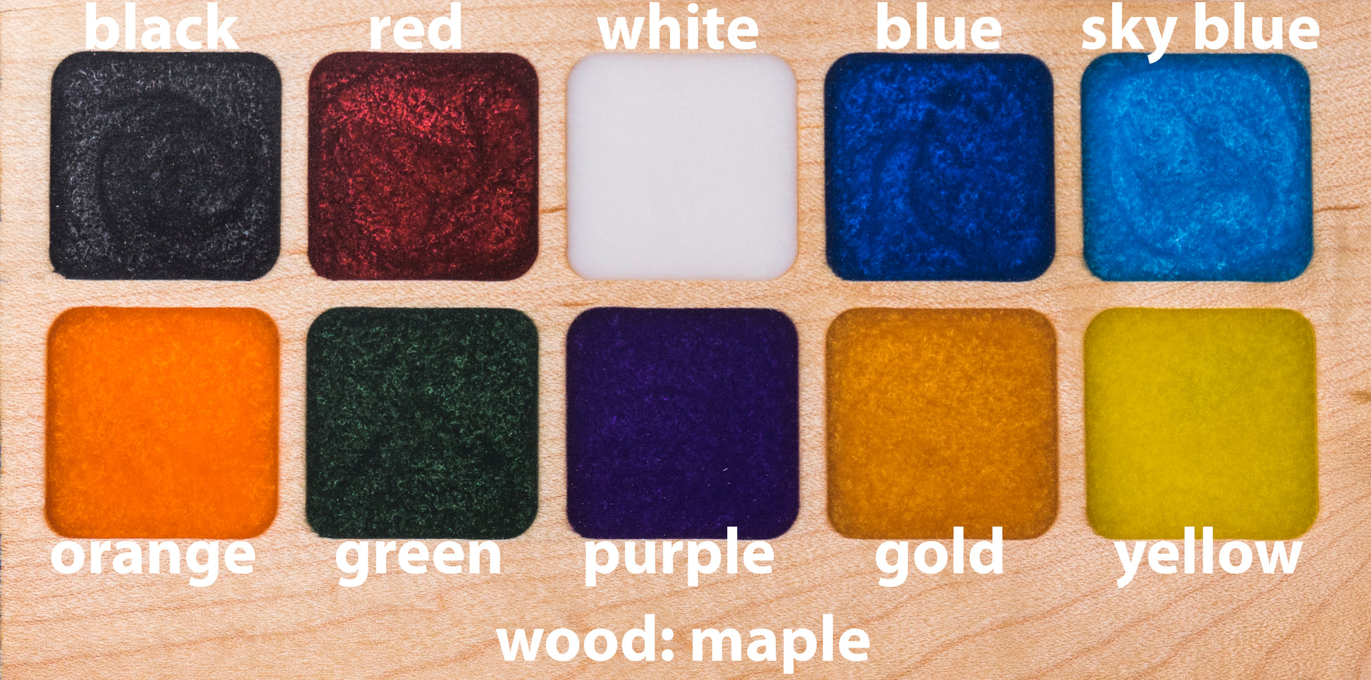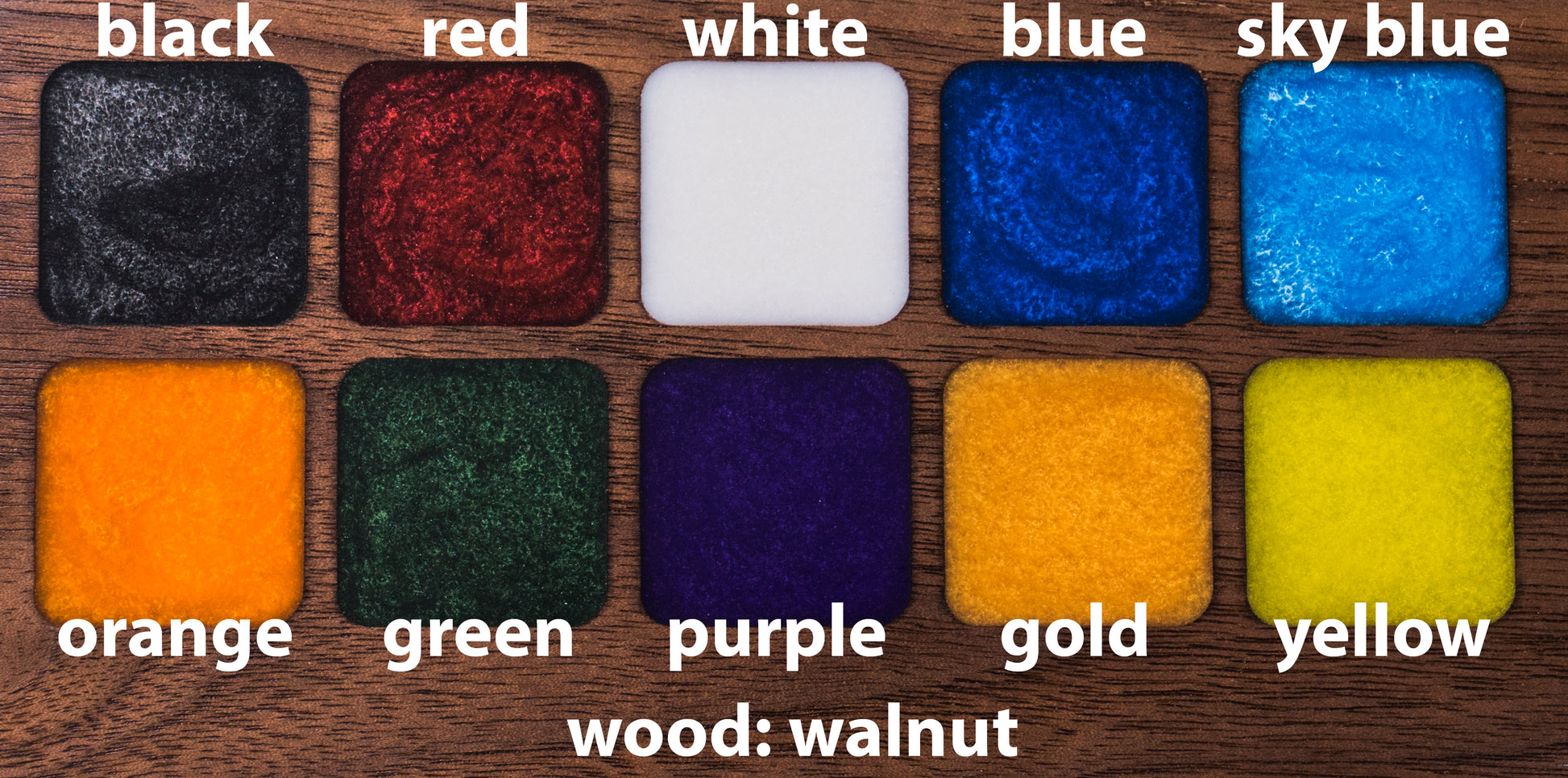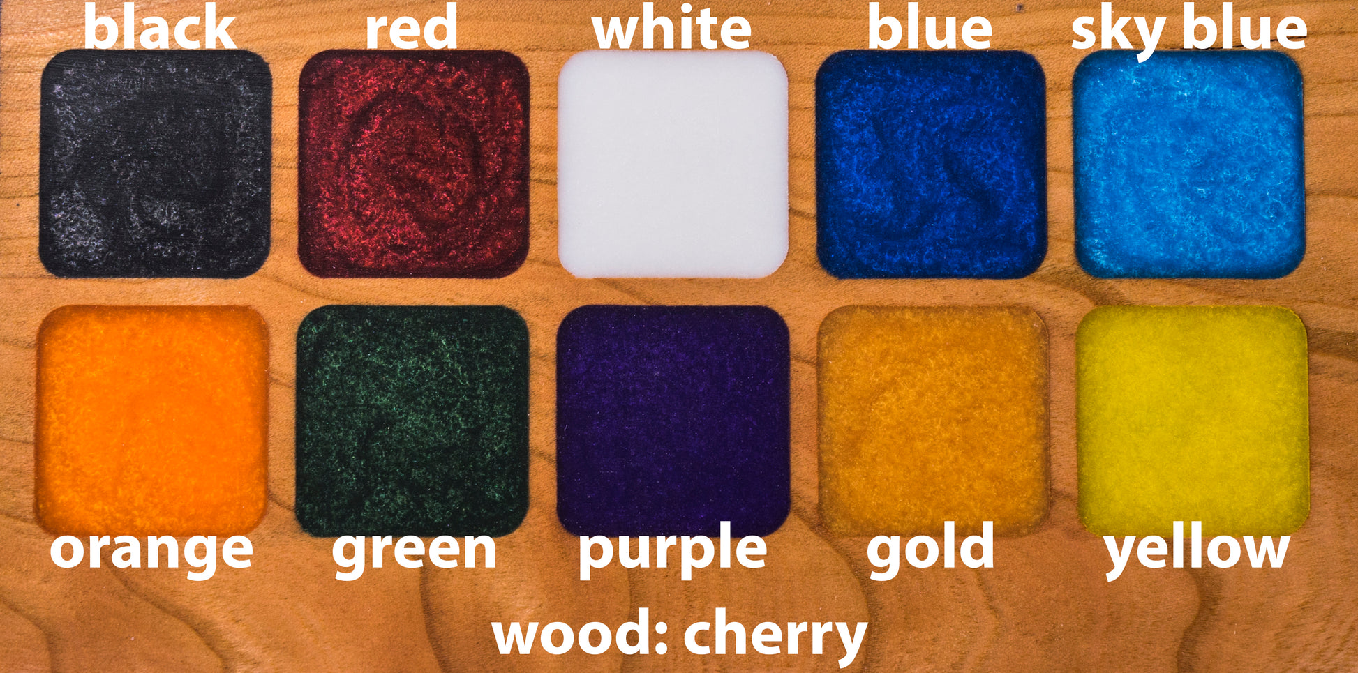 - Top: Solid cross grain hardwood with colored epoxy inlay. Sanded and hand finished with a durable clear coat.*